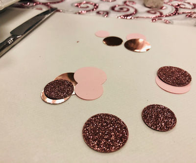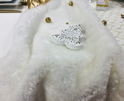 Des accessoires de tables : Plumes, perles de pluies, galets, pétales, portes noms originaux, porte menu, paillettes, diamants, …