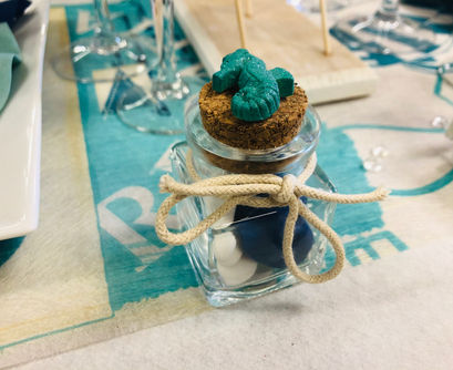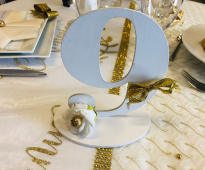 Des accessoires de tables : Plumes, perles de pluies, galets, pétales, portes noms originaux, porte menu, paillettes, diamants, …